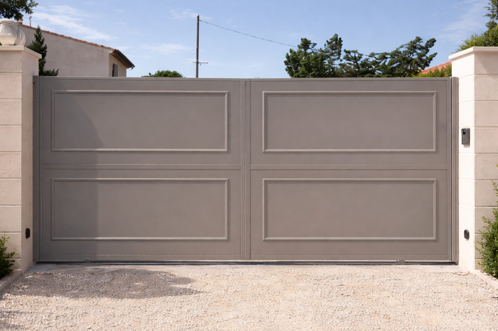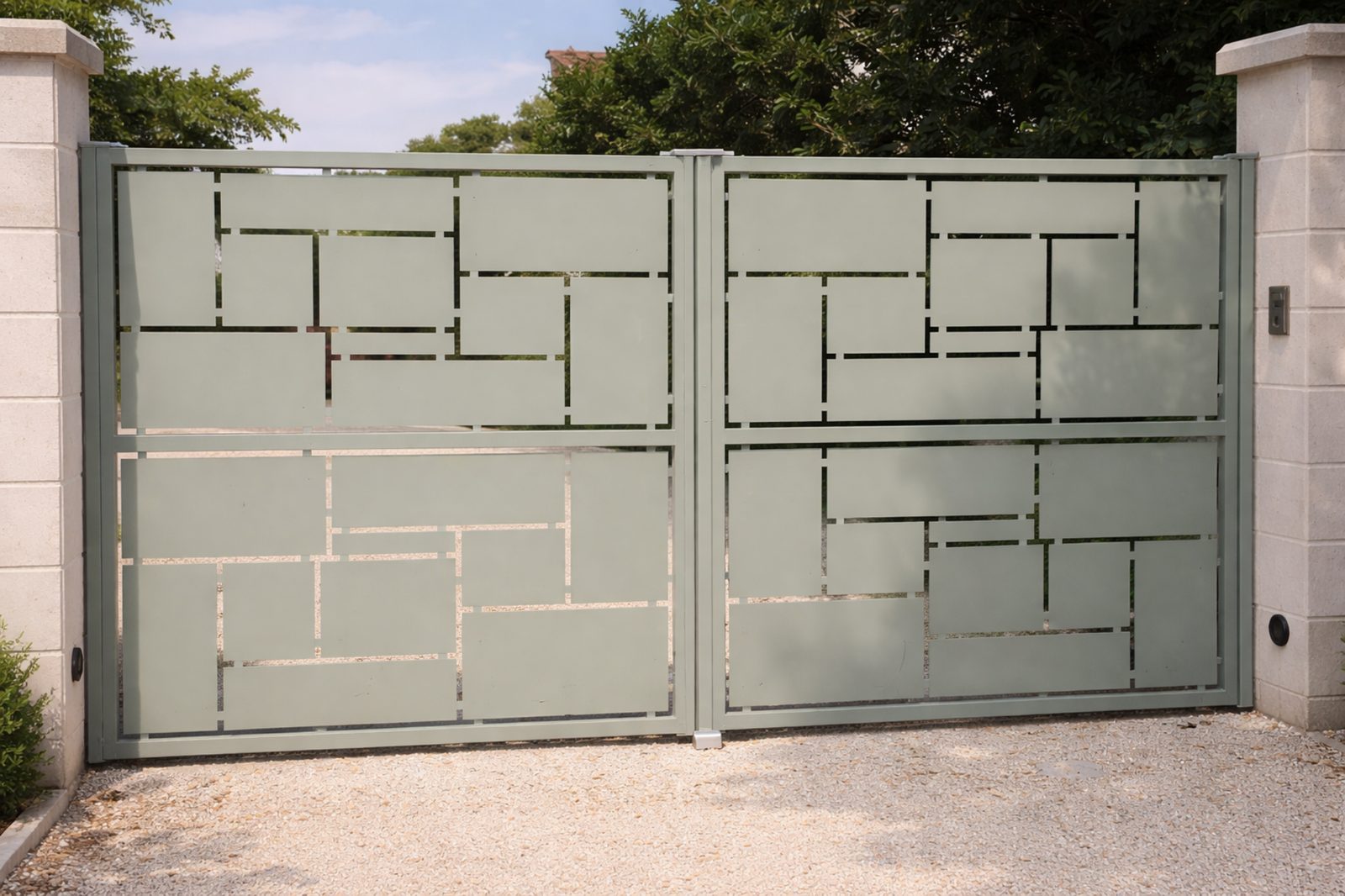 Portail contemporain avec tôle 2,5 mm et finitions sobres.