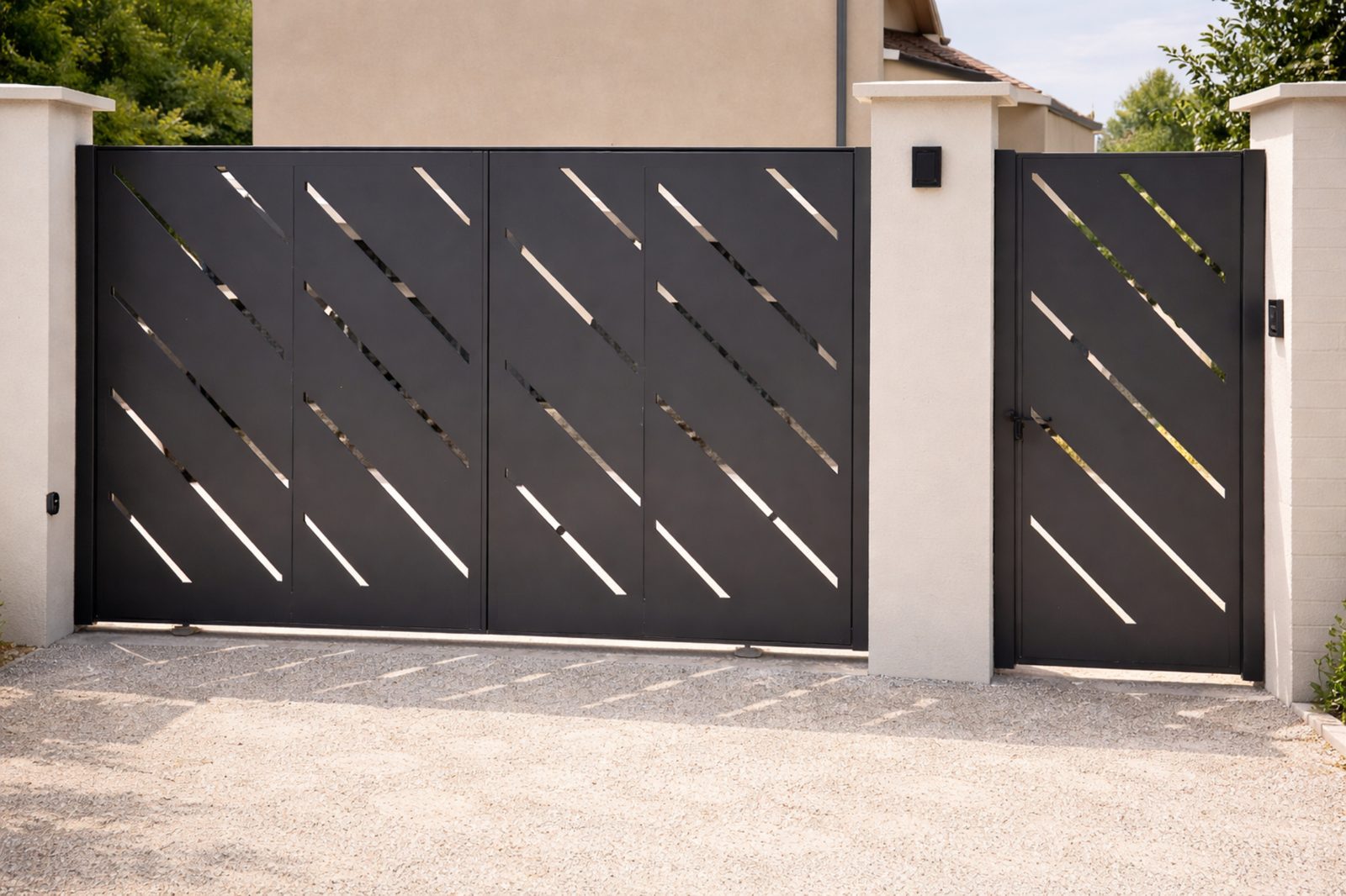 Portail design moderne en acier avec finition brute.